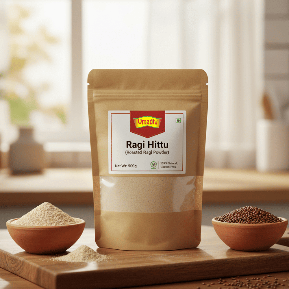 - Ready-to-Use Roasted Flour: This Ragi Hittu is pre-roasted (Huri Hittu), saving you valuable cooking time. It’s perfect for instantly preparing nutritious porridge, malt, or health drinks.